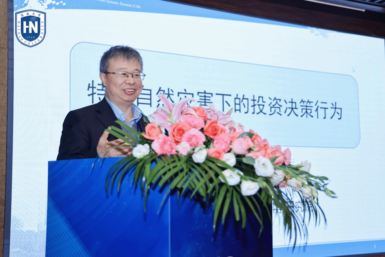 此次论坛邀请了中国科学院数学与系统科学研究院杨晓光研究员作题为“特大自然灾害下的投资决策行为”的大会主旨报告。杨晓光研究员的报告结合我国中国自然灾害形势复杂,极端天气气候事件多发的特点探讨了特大自然灾害对投资者投资决策的影响,发现特大自然灾害不仅带来巨大损失,而且影响人们的风险认知,对其投资决策会产生重要影响。