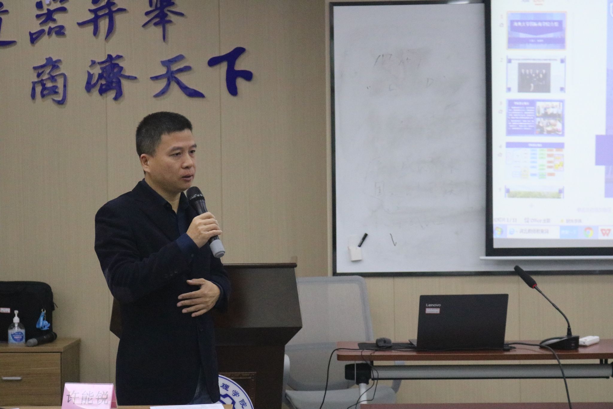 副院长许能锐教授向与会人员介绍了出席本次论坛的领导与专家,他介绍了海南大学的发展历程及会计中外人文交流研究院成立的初衷以及海南大学在新文科建设中一些进展。他衷心希望通过本次研讨会,向各兄弟院校多交流学习,建立合作共享的平台,加强对教学成果奖的培育,不断强化高水平教学成果凝练,以夯实服务海南自贸港建设的国际会计人才培养基础。