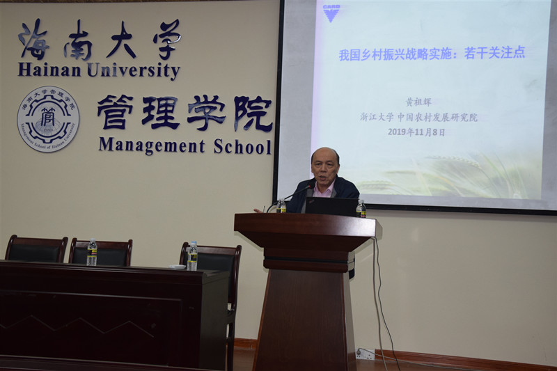 2019年12月4日,浙江大学中国农村发展研究院首席专家、浙大求是特聘一级教授黄祖辉教授应邀到澳门永利皇宫赌场