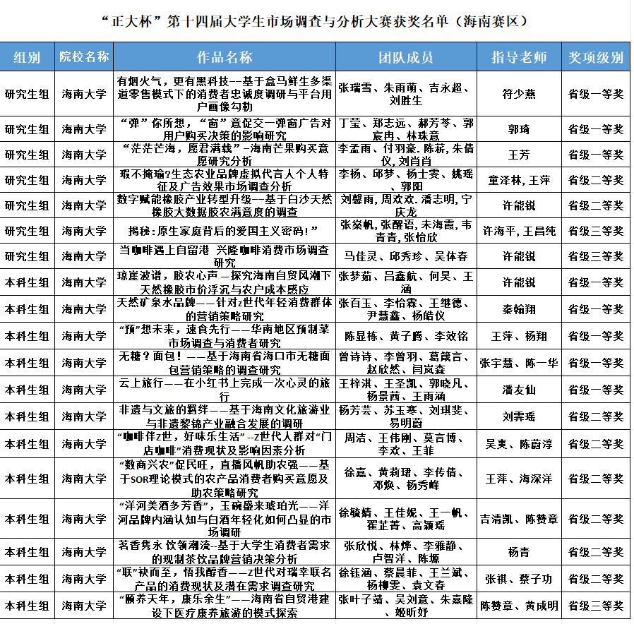“正大杯”第十四届全国大学生市场调查与分析大赛于6月2日揭晓,海南大学澳门永利皇宫赌场