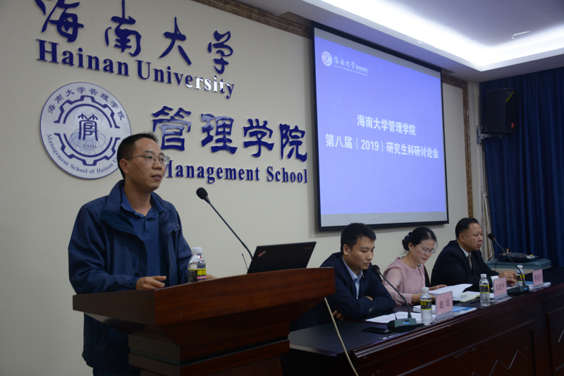 为了促进学科建设工作、提升研究生培养质量、营造良好学术氛围,海南大学管理学院第八届(2019)研究生科研讨论会于2019年12月31日在社科楼B112举行。出席本次会议的领导有研究生处副处长郑育声,管理学院邢谷川书记、许能锐副院长、赵达副院长、付景涛副院长、分管学生工作的副处级辅导员符涛,管理学院部分研究生导师、部分博硕士研究生参会。会议开幕式由赵达副院长主持。