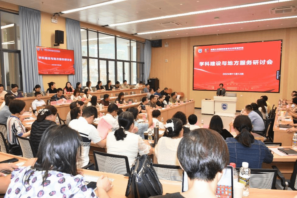 唐宁玉院长、南国芳书记带领学院领导班子及学科点负责人在海南大学观澜湖校区A101教室参加由观澜湖校区组织的学科建设与地方服务研讨会。中共海南省委政策研究室副主任刘旭、海南省旅文厅政策法规处一级调研员李红、海口市龙华区副区长龙靖滨等政府及企事业单位人员,海南大学高佃恭副校长,学校人文社科处、研究生院、发展规划与学科建设处及人事处等职能部门相关人员、国际旅游与公共管理学院领导班子、教师代表及行政人员出席会议。会议由国际旅游与公共管理学院王琳院长主持。