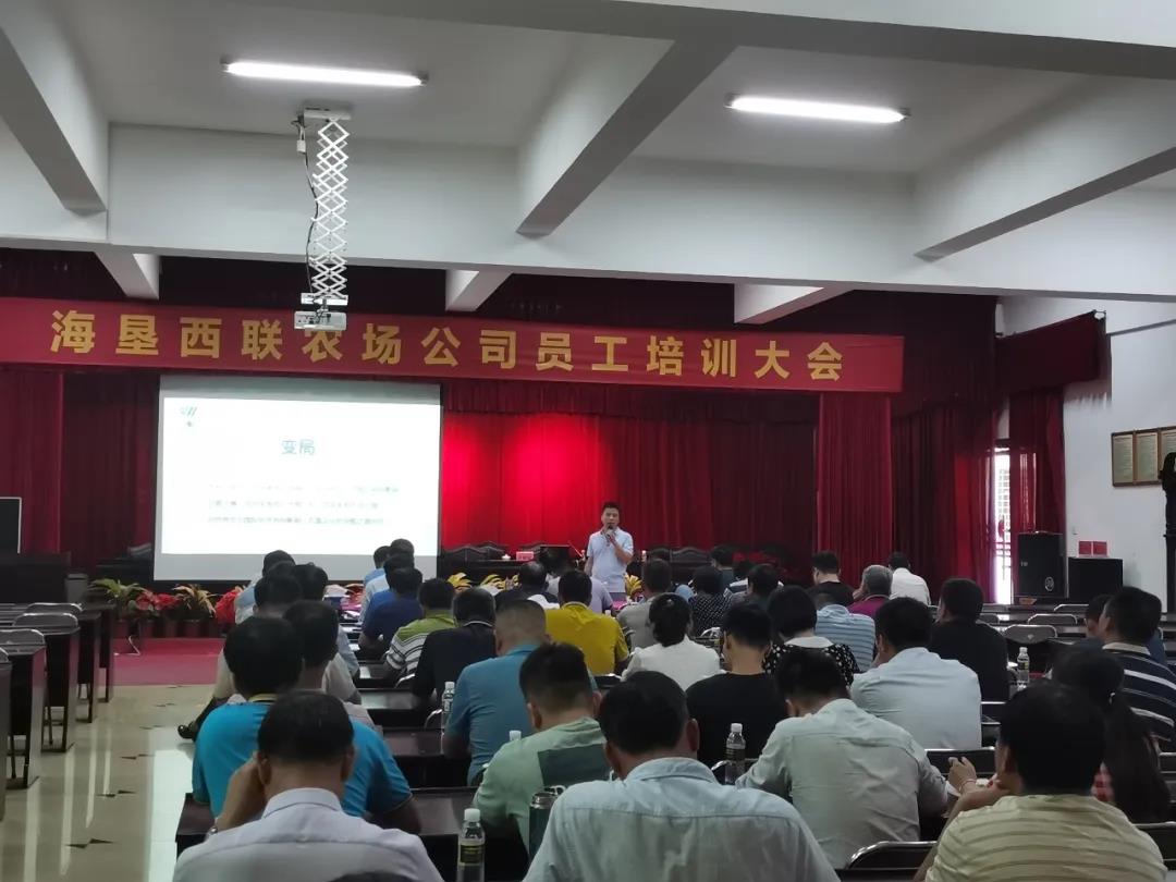 针对西联农场公司的发展和经营状况,童泽林教授提出:在品牌强农、品牌强垦的战略指引下,西联农场已经具备实施品牌战略的基础,应当深度挖掘自身的品牌基因,将西联打造成为具有极大影响力的强势品牌,在品牌强垦、品牌兴垦中树典型。交流座谈后,海南大学管理学院许能锐副院长为西联农场公司的员工进行了培训。培训基于海南自贸港的加速推进建设下,新时代农业如何发展、热带农业国际合作和农垦企业突围之路三个方面进行阐述。