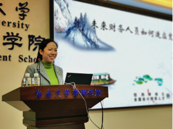 ,就“未来财务人员如何适应变化”这一话题展开分享。本次讲座由许能锐副院长主持,部分会计系研究生参加。