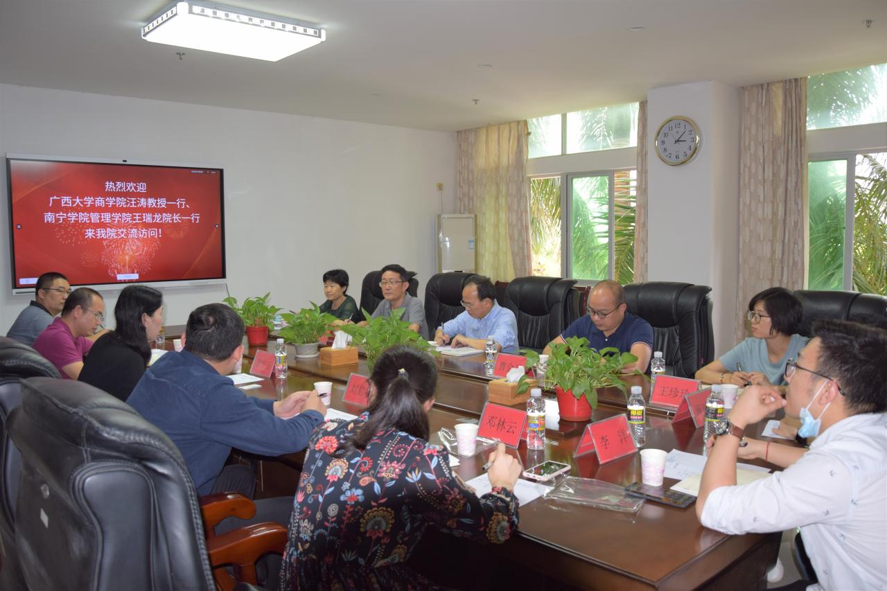 海南大学管理学院、广西大学商学院、南宁学院管理学院分别介绍了各自学院的基本情况,并围绕专业建设、制度建设、文化建设、实验室建设等方面内容展开交流,表示之后将继续加强交流合作,共同促进发展。