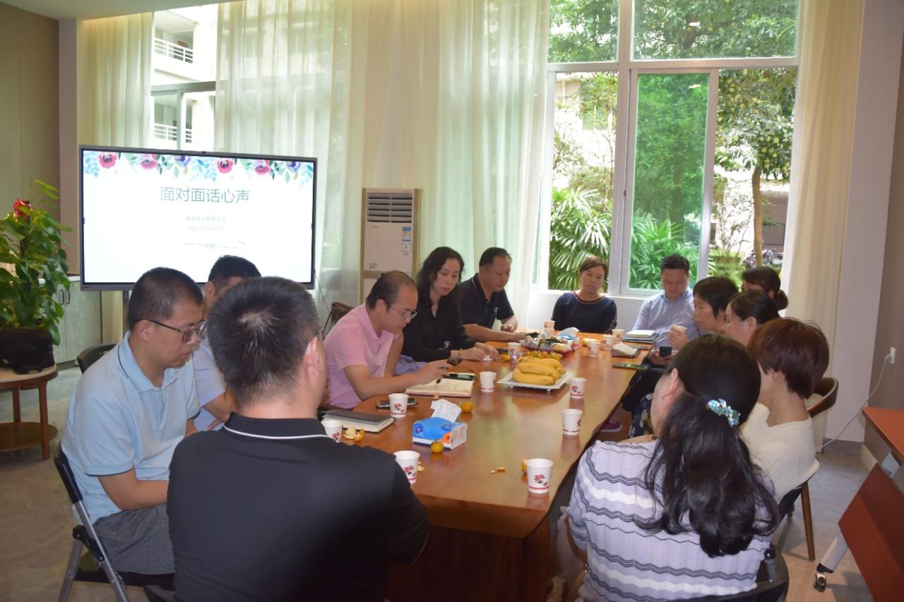 2021年11月2日下午,管理学院在社科楼B106室举办“面对面”谈心谈话活动(第六期)。院长唐宁玉、党委书记邢谷川、副院长张德生、副书记易振、副院长付景涛、副院长赵达、副院长童泽林及学院部分教师参加活动。