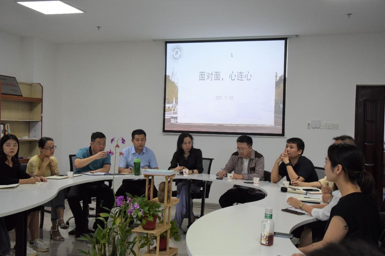 2021年11月3日下午,管理学院在社科楼B320室举办“面对面”谈心谈话活动(第七期)。院长唐宁玉、副书记易振、副院长付景涛、副院长赵达及学院部分专业硕士研究生参加活动。
