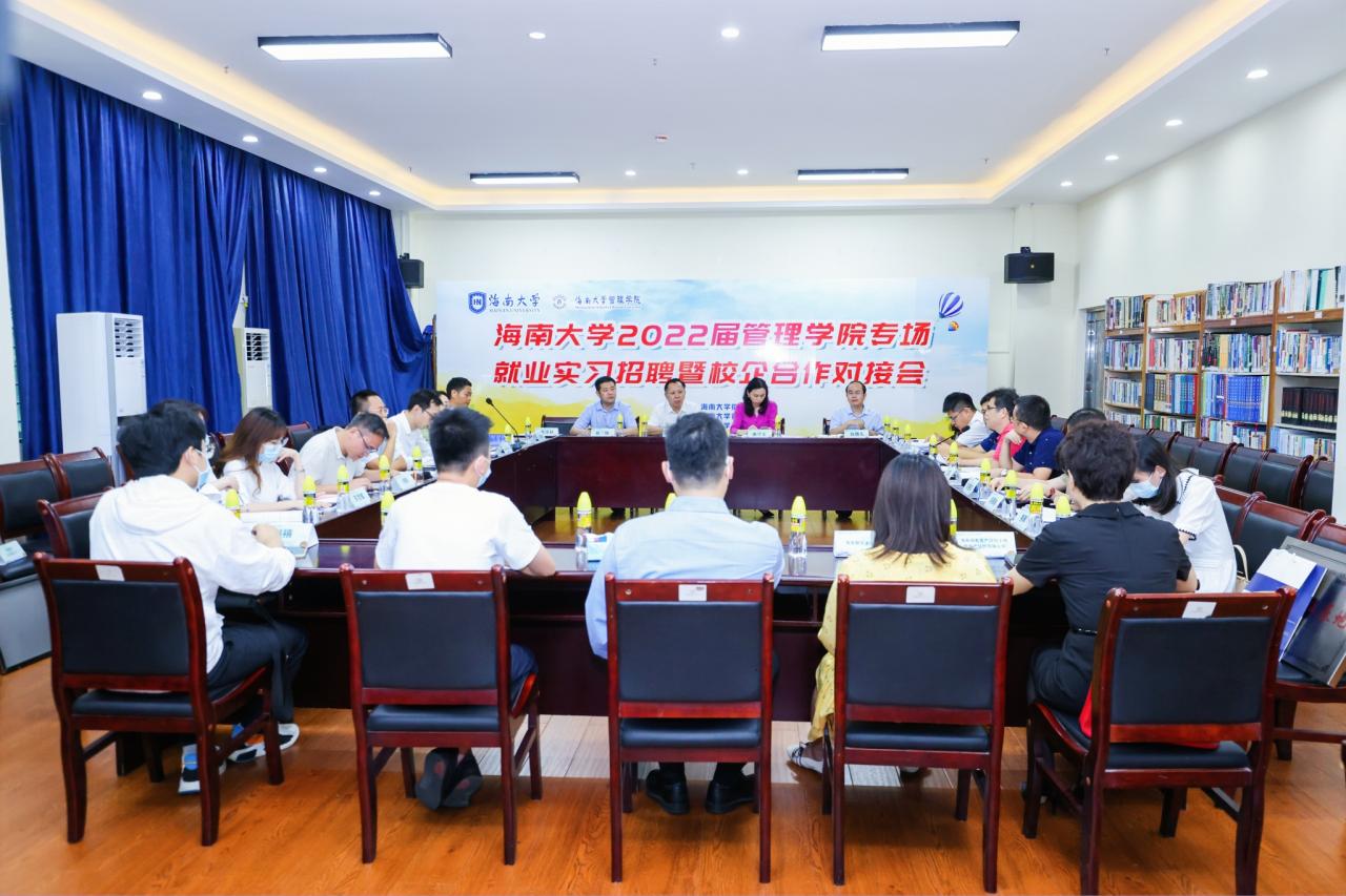 2022年5月31日下午,海南大学管理学院在社科楼B112学术报告厅举行2022届专场就业实习招聘暨校企合作对接会。