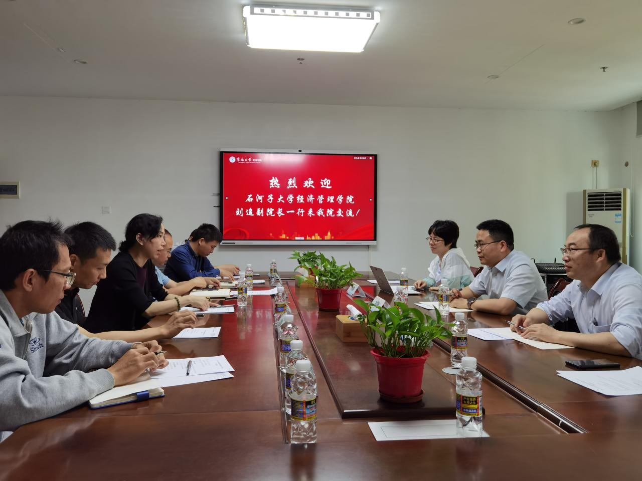 2月20日下午,石河子大学经济管理学院副院长刘追一行到海南大学管理学院交流。管理学院院长唐宁玉,副院长张德生、许能锐、赵达出席会议,工商管理系、会计系系主任参加会议。会议由管理学院院长唐宁玉主持。