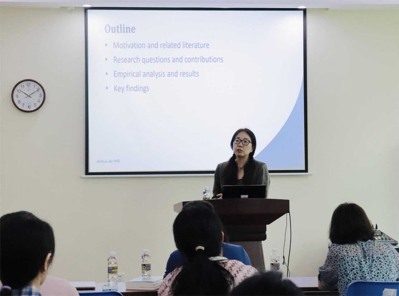 师生开展主题为《Climate Risks and Debt Specialization》的专题讲座。本次讲座通过线下进行的方式,管理学院农林经济管理系韦开蕾教授、许海平教授、刘玲教授等老师及学生积极参加,共计有20余人参加本次讲座。海南大学会计中外人文交流研究院院长许能锐教授主持讲座并代表学院致辞欢迎。