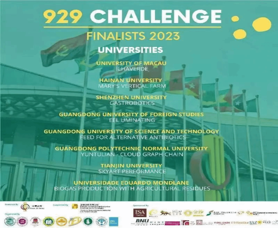 中国与葡语国家“929挑战赛”是一项由中国与葡语国家经贸合作论坛(澳门)常设秘书处主办的面向中国与葡萄牙语系国家大学生和初创团队的国际创业比赛。大赛旨在发挥澳门的门户作用,连接中国与葡语国家的商业创意,帮助中国的初创企业和投资人获取更多的国际商业机遇。目前,“929挑战赛”是中国与葡语国家间最大规模的创新创业竞赛,具有广泛的国际影响力。