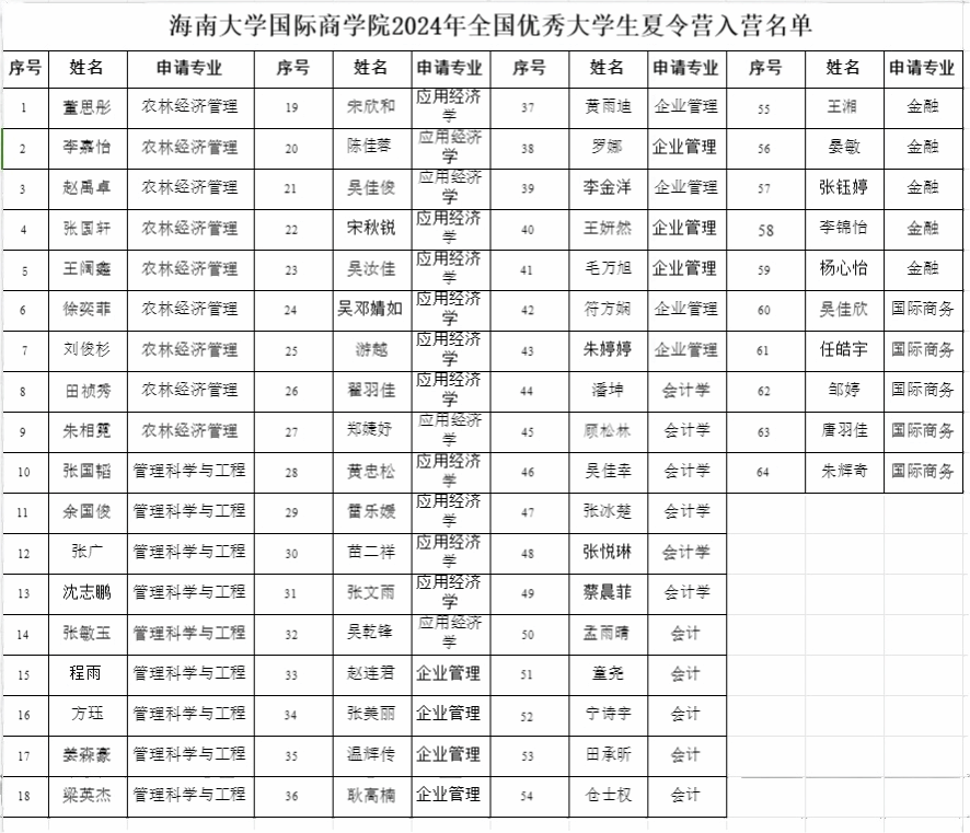 经资格审核及综合评审,现将澳门永利皇宫赌场 2024年全国优秀大学生夏令营入营名单公布如下: