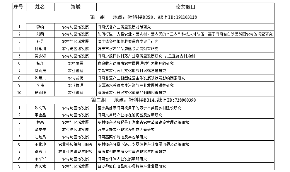 海南大学管理学院2022年下半年农业硕士学位论文答辩会公告