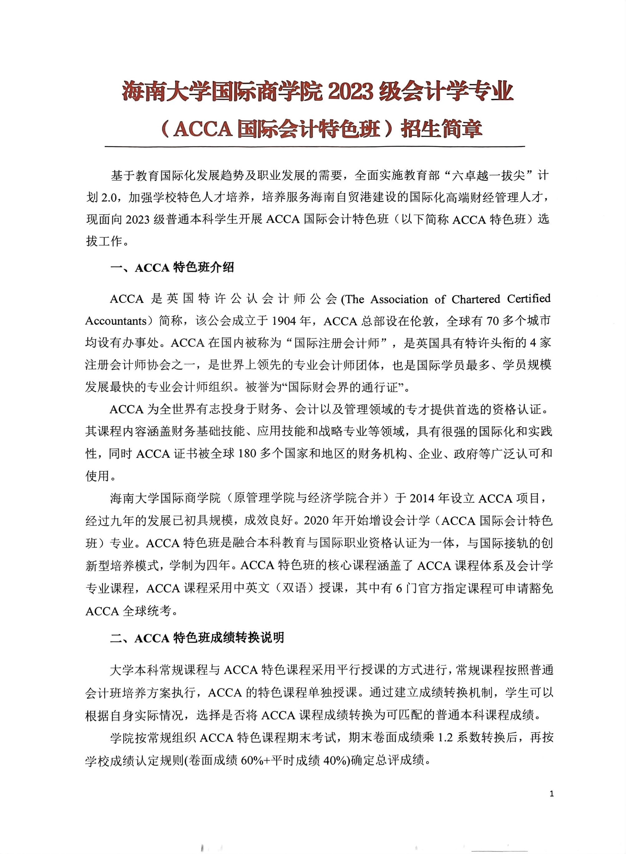 澳门永利皇宫赌场 2023级会计学专业(ACCA国际会计特色班)招生简章