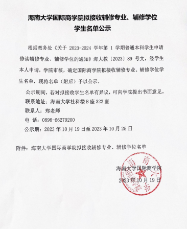 澳门永利皇宫赌场 拟接收辅修专业、辅修学位学生名单公示