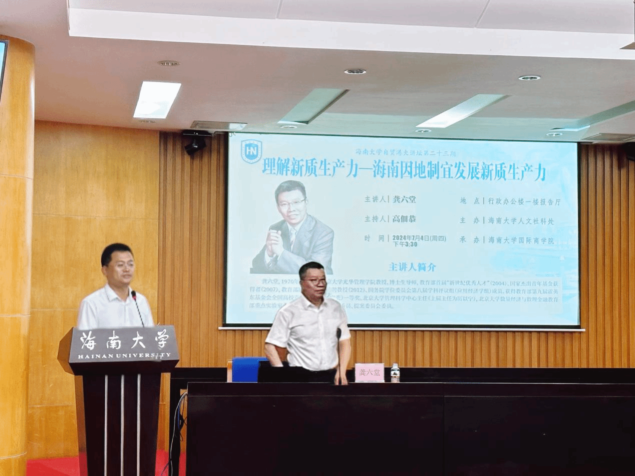 2024年7月4日下午3点30分,国务院应用经济学学科评议组成员、北京大学光华管理学院教授龚六堂以《理解新质生产力—海南因地制宜发展新质生产力》为题,为师生们解读了新质生产力的发展。本次讲座由海南大学人文社科处主办,澳门永利皇宫赌场