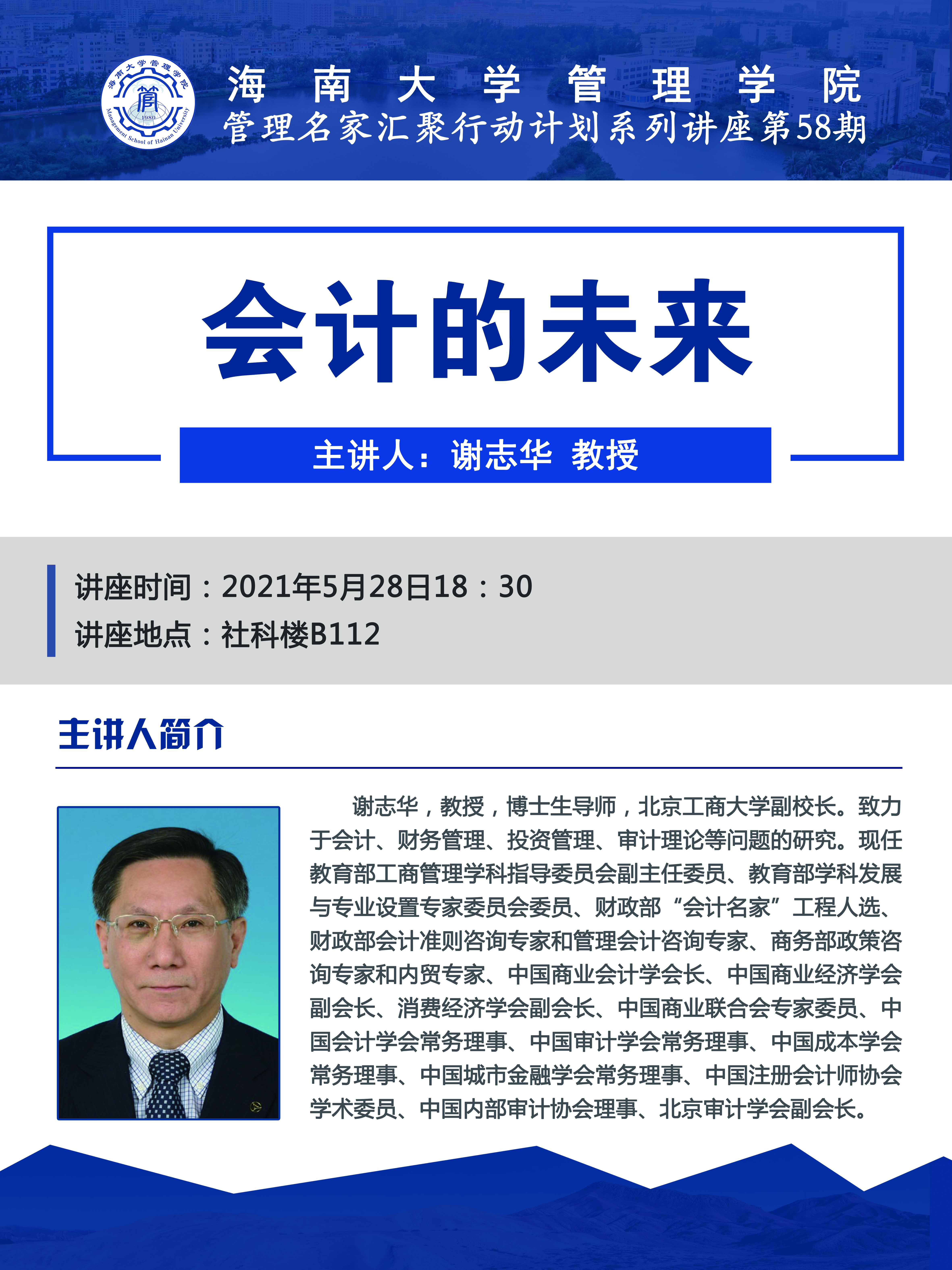 管理名家汇聚行动计划系列讲座第58期: 北京工商大学副校长谢志华教授应邀莅临澳门永利皇宫赌场 讲学