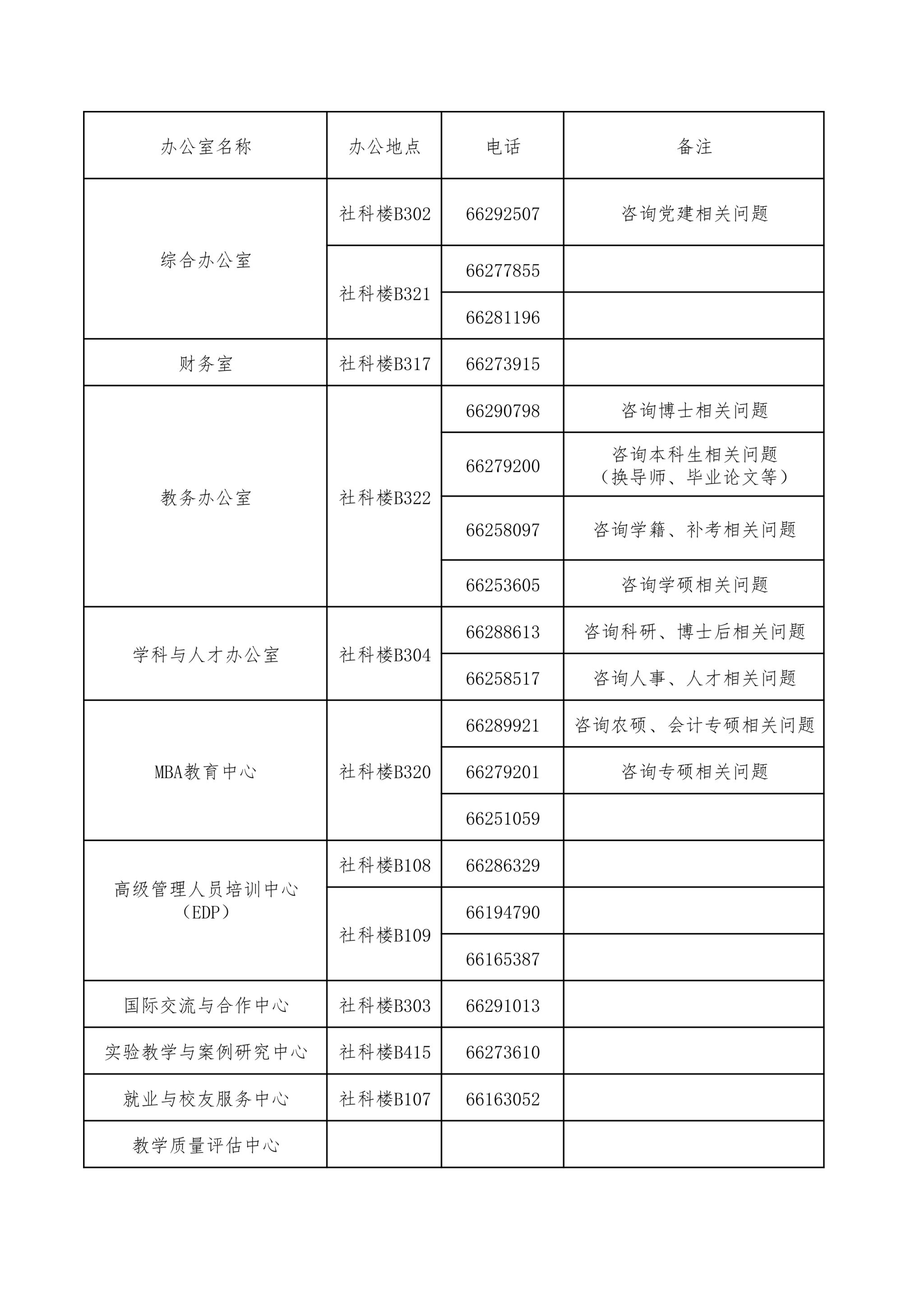 管理部门通讯录