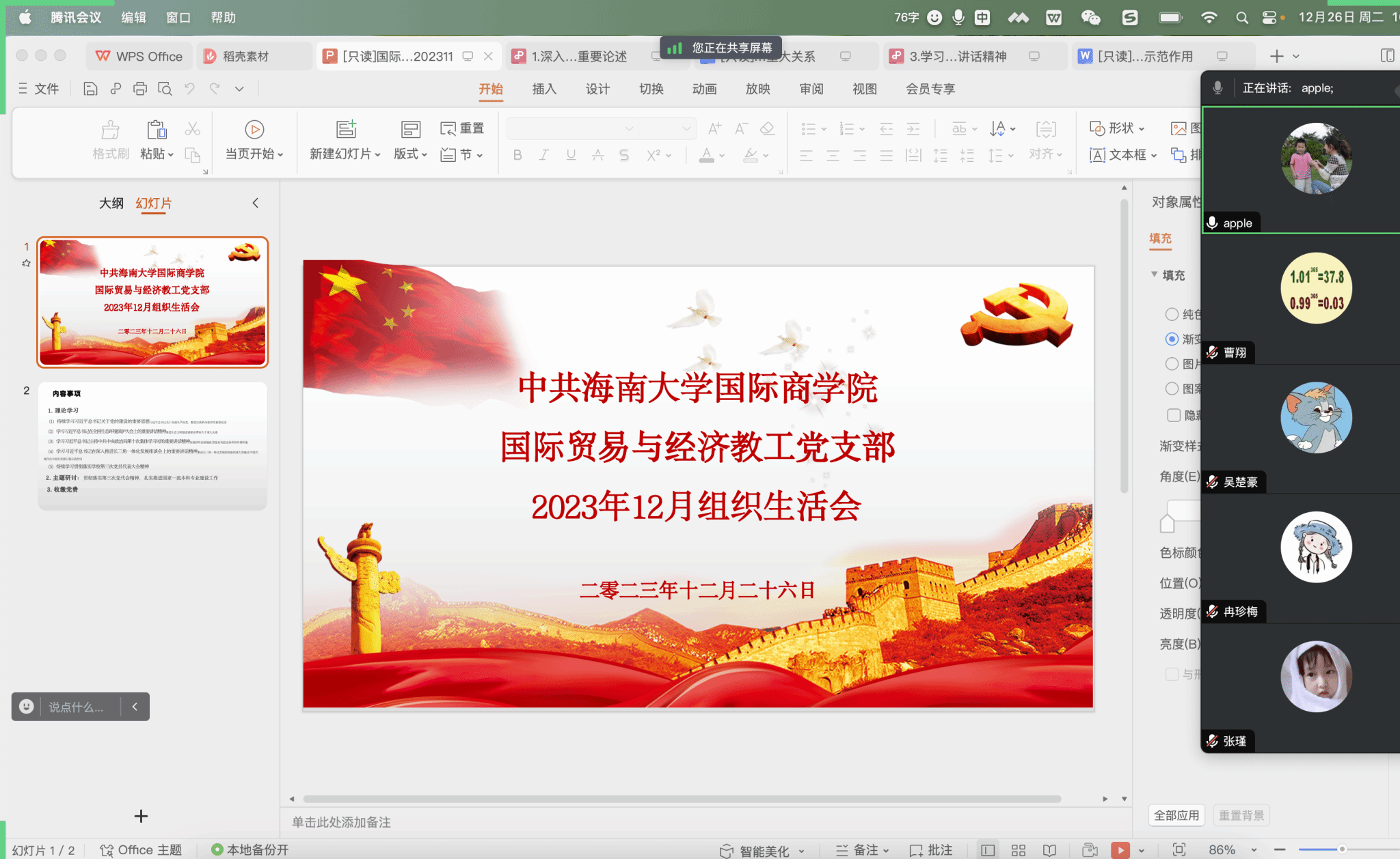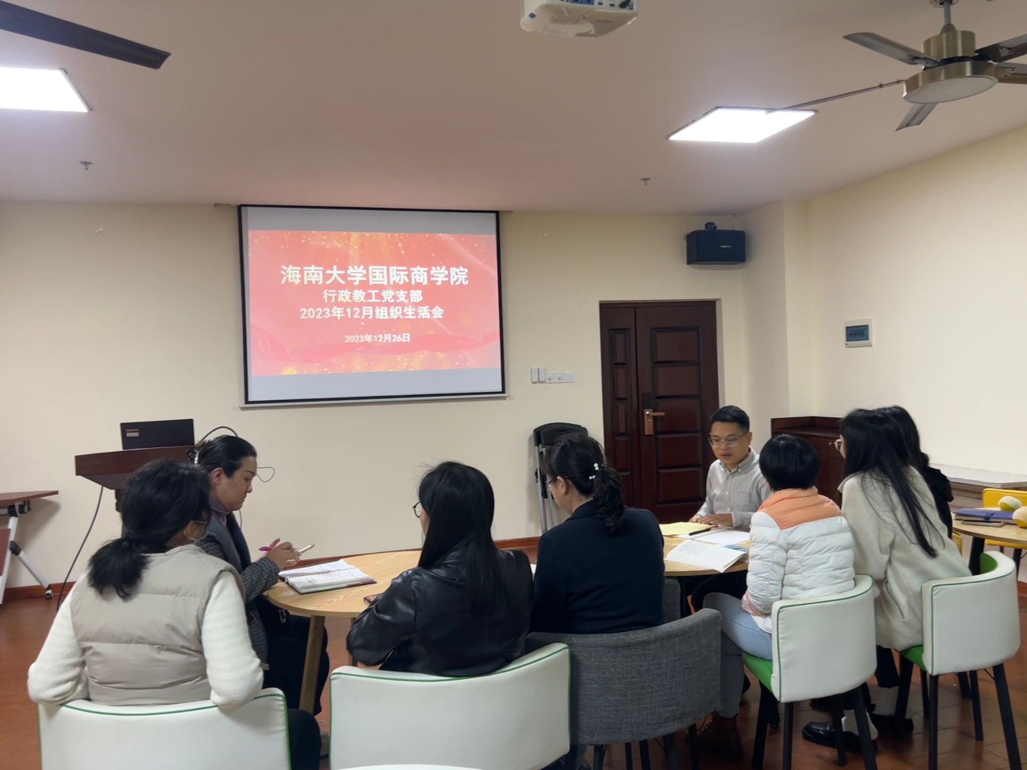 2023年12月,澳门永利皇宫赌场 各党支部分别召开了学习会,持续深入学习贯彻党的二十大精神。学院班子成员带头参加所在党支部组织生活会并列席所联系党支部组织生活会,就中国共产党海南大学第三次党员代表大会等内容进行领学。
