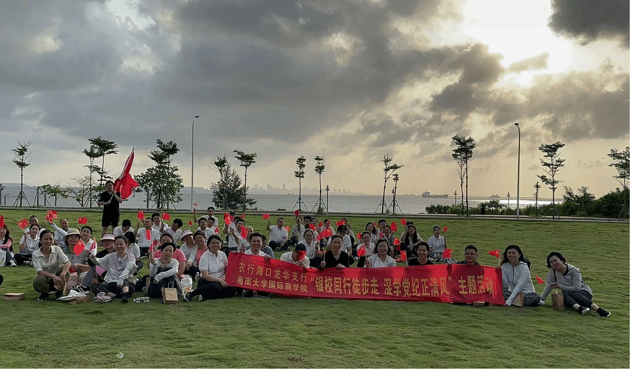 为扎实推进党纪学习教育,充分发挥党建引领作用,5月14日下午,澳门永利皇宫赌场 与中国农业银行海口龙华支行联学联建,开展“徒步+党纪学习教育”主题党日活动。