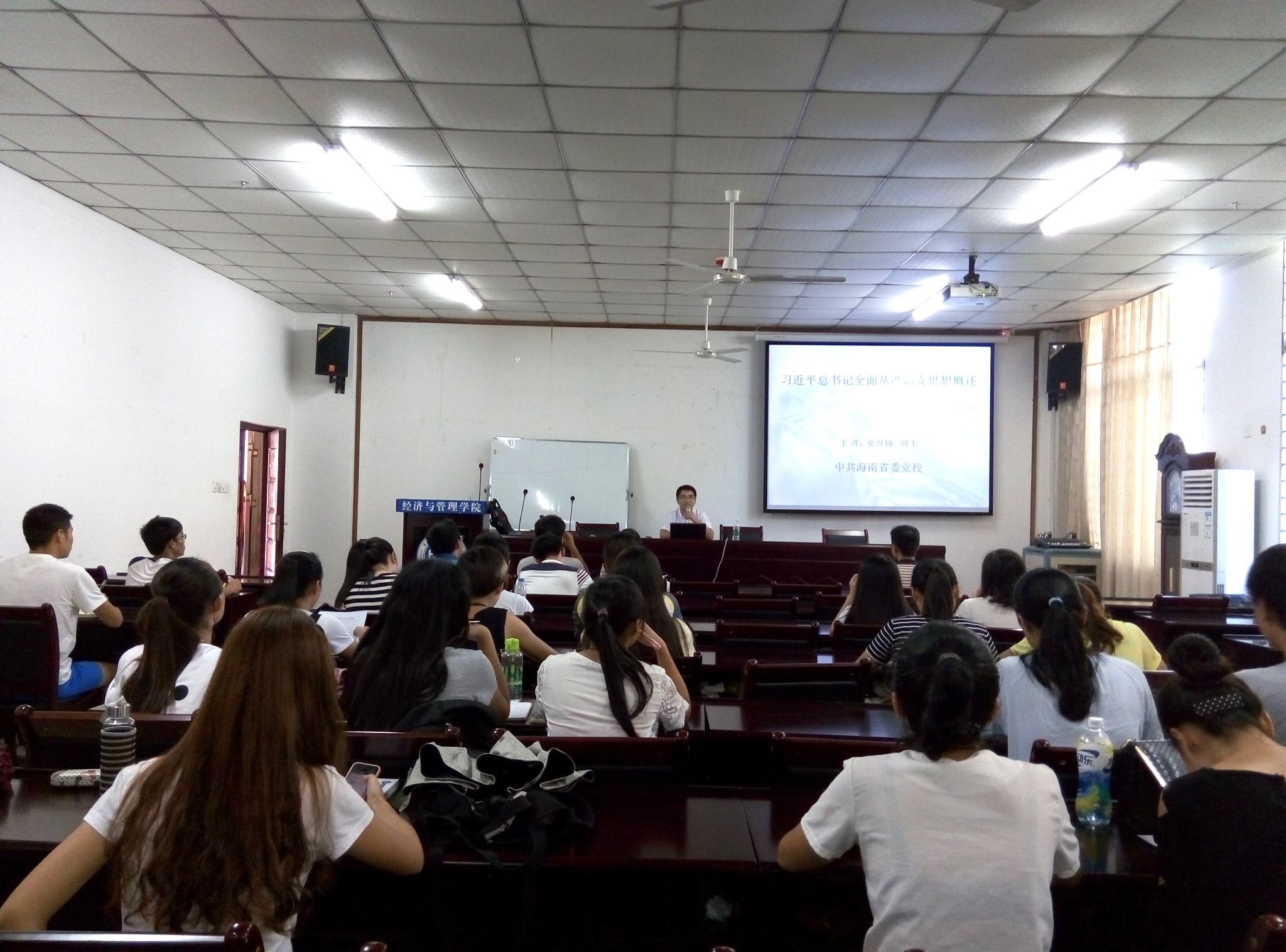 特邀中共海南省委党校老师张红锋博士在社科楼会议室B112为学生党员干部作“习近平总书记全面从严治党思想概述”的主题报告。来自经济与管理学院学生党建工作领导小组综合办公室的全体成员以及各支委委员40余人聆听了精彩报告,会议由澳门永利皇宫赌场