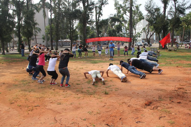 为深入贯彻落实党的十八大和十八届四中全会精神,切实提高党员教育培训工作科学化水平,培养造就高素质学生党员队伍,根据《2014-2018年全国党员教育培训工作规划》和党内有关规定,学院特开设大学生党员骨干培训班,并于2014年11月2日下午,在学校起点草坪举办学院分党校第一期大学生党员骨干培训班素质拓展暨开班仪式。 此次开班仪式共38名大学生党员骨干参加,开班素质拓展由学校育部季占忠老师担任培训教练。在季老师的带领下,学员以宣誓成为“鹰一样的个人,雁一样的团队”拉开序幕。同学们被随机分为三组,以组为单位设计自己的队名、队徽、队呼以及队歌等,并主要开展了“飞盘挑战”、“卓越圈”、“无敌战车”以及“老虎猎人枪”四个拓展活动,让同学们在拓展活动中思考,在团队任务中团结,在俯卧撑及立定蹲起的游戏惩罚中增强身体素质,在团队总结发言中吐露心声。最后以“中华大团圆”的圆圈绳为本次活动画上了圆满的句号。 值得一提的是,在“中华大团圆”的活动中,同学们激动不已,一声又一声的“海大加油!经管加油!”振奋人心,季老师则一再强调团结,并且认为团结的中华民族将会在世界民族之林屹立不倒!这给大学生党员骨干们上了很有价值的一课。学工办张乃脆老师参加了上述活动。 (文:席鸣岐)