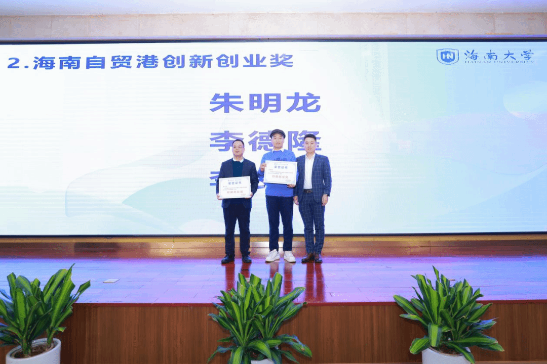 主题演讲结束后举行了海南自贸港创新创业颁奖,俞花美处长、赵小宝总经理、唐宁玉院长为各奖项获得者颁奖。