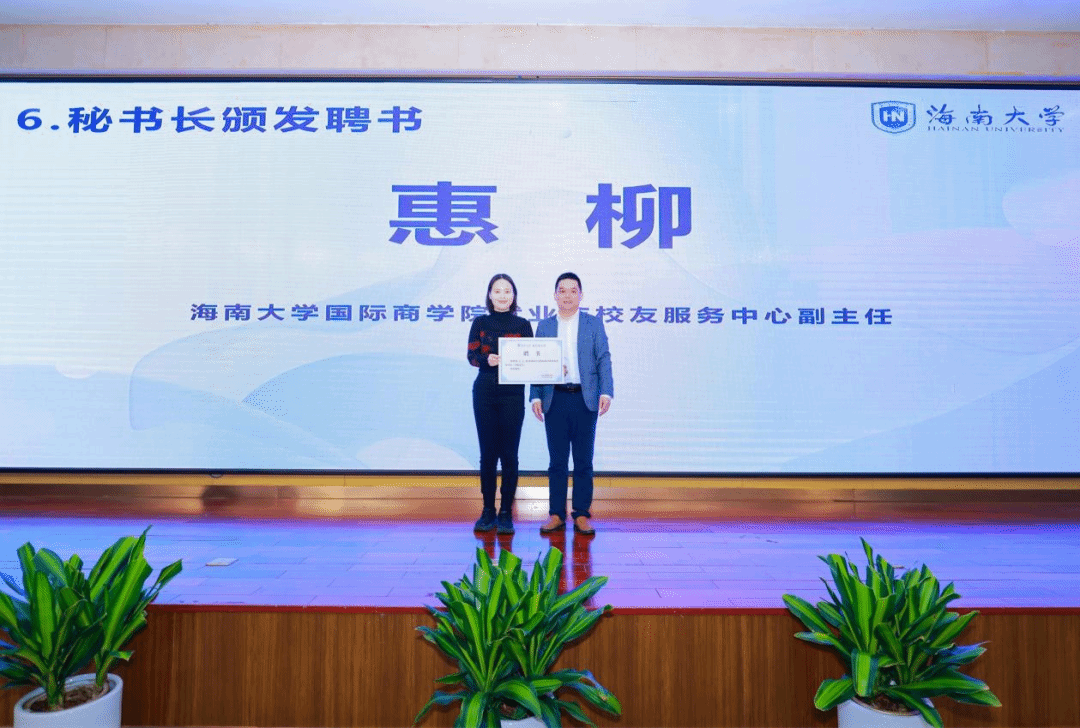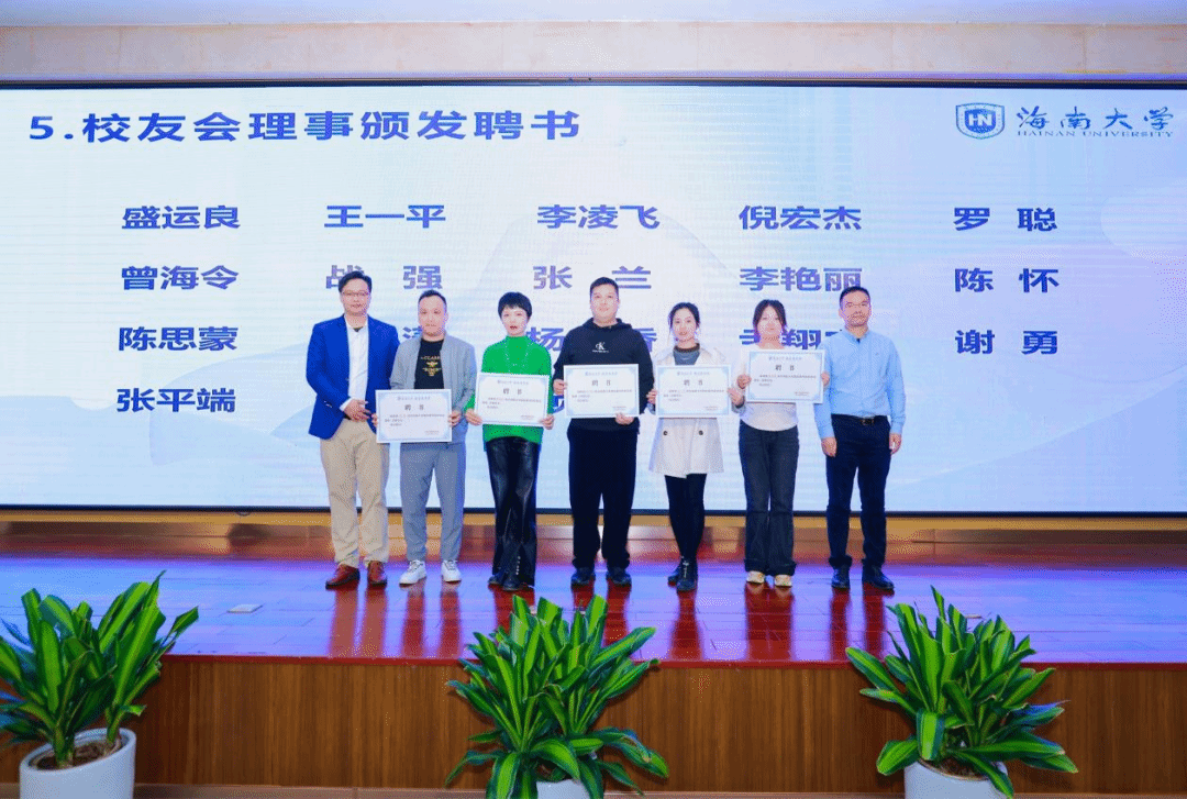 颁发海南大学MBA校友理事会理事长聘书