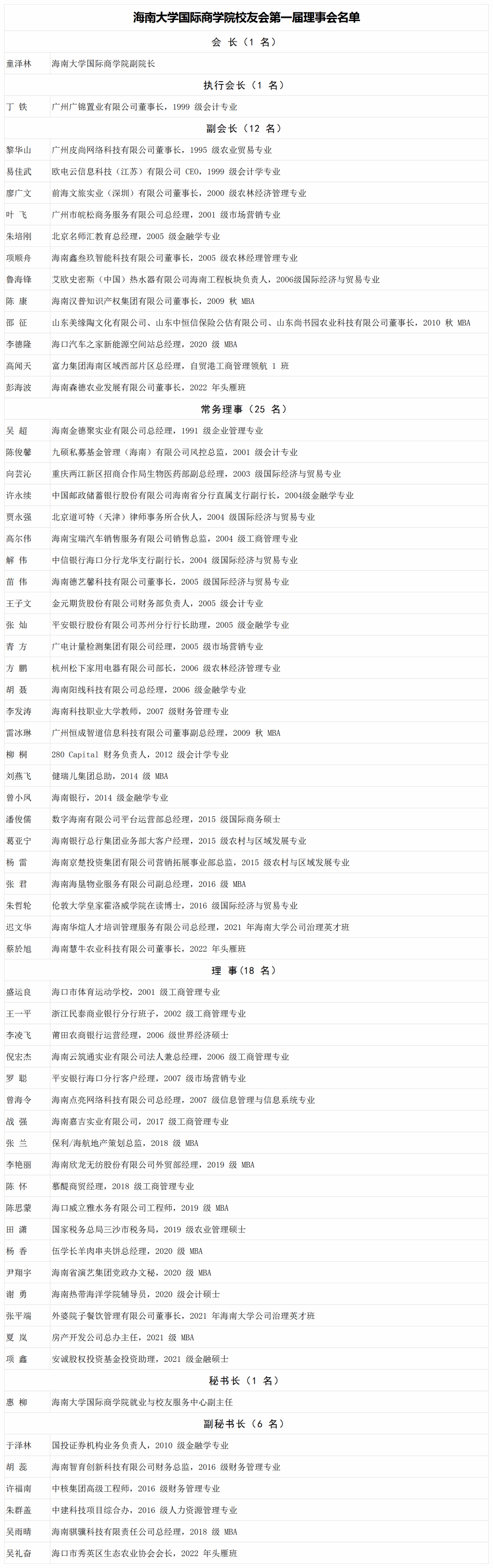 校友会第一届理事会名单附于文后)。