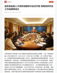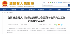 2023年12月23日下午,海南大学联合海南省金融发展促进会在海口共同举办“自贸港金融人才培养战略研讨会暨海南省研究生工作站揭牌启动仪式”。为更好地对标海南自贸港建设要求,海南大学金融学科积极谋划推动产学研合作,高起点培养自贸港金融人才。会议围绕海南省人才建设与海南研究生工作站未来的发展计划、风险管理师职业教育的重要性、风险管理师人才的培养等议题展开讨论,与会人员一起探讨了海南自贸港人才队伍建设与发展的新路径,共同为自贸港建设贡献人才力量。