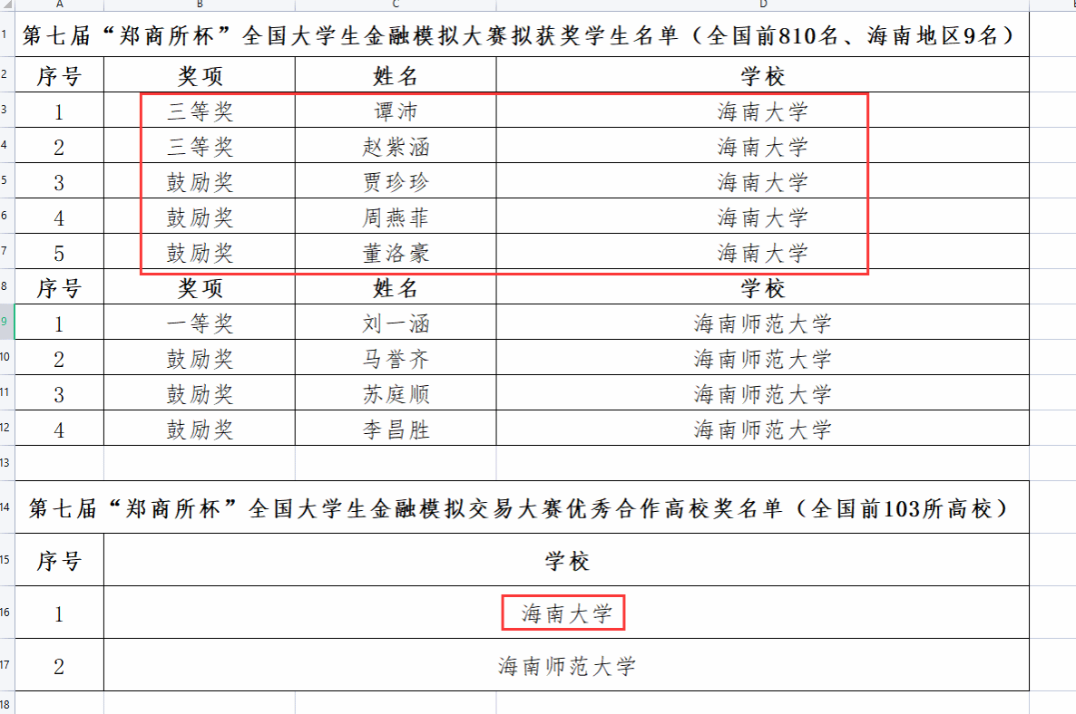 日前,第七届“郑商所杯”全国大学生金融模拟交易大赛成绩公布,海南大学荣获“优秀合作高校奖”,澳门永利皇宫赌场