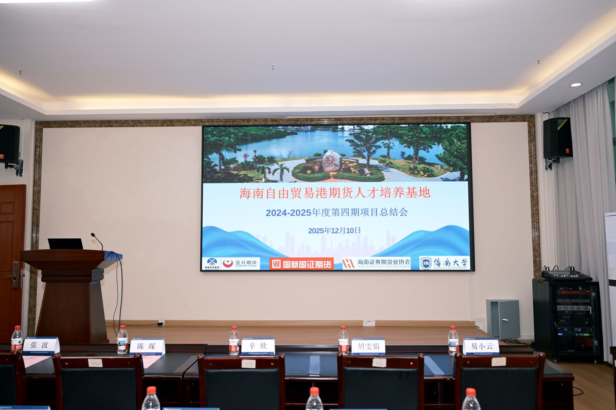 2025年12月10日下午,海南自由贸易港期货人才培养基地2024-2025年度项目结项仪式在海南大学社科楼B112学术报告厅顺利举行。海南证监局、海南证券期货业协会、金元期货股份有限公司、国新国证期货有限责任公司等单位代表,与澳门永利皇宫赌场
