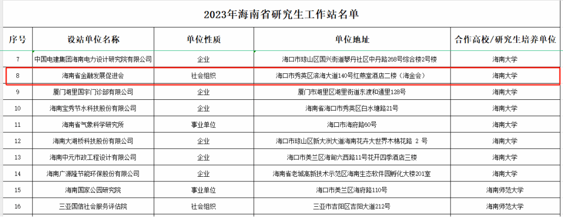 金融硕士学位点与海南省金融发展促进会联合申报并获批1个海南省首批研究生工作站。
