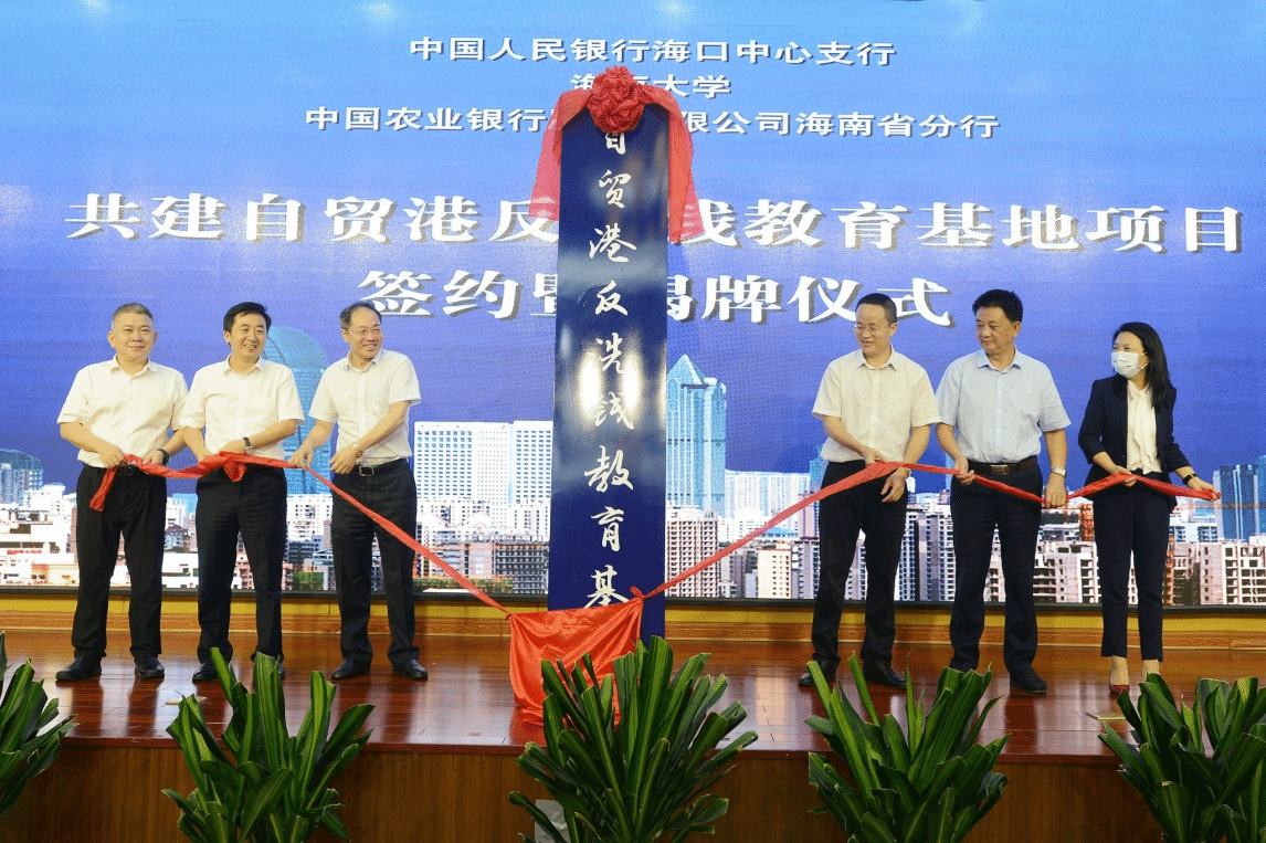 2022年4月28日,中国人民银行海南省分行、农行海南分行与海南大学签订合作备忘录,共建“自贸港反洗钱教育基地”。该教育基地旨在将反洗钱知识引进校园,拓展深化反洗钱宣传培训方式,增进学生对反洗钱专业知识的了解,提升学生识别防范洗钱风险、金融诈骗等能力。