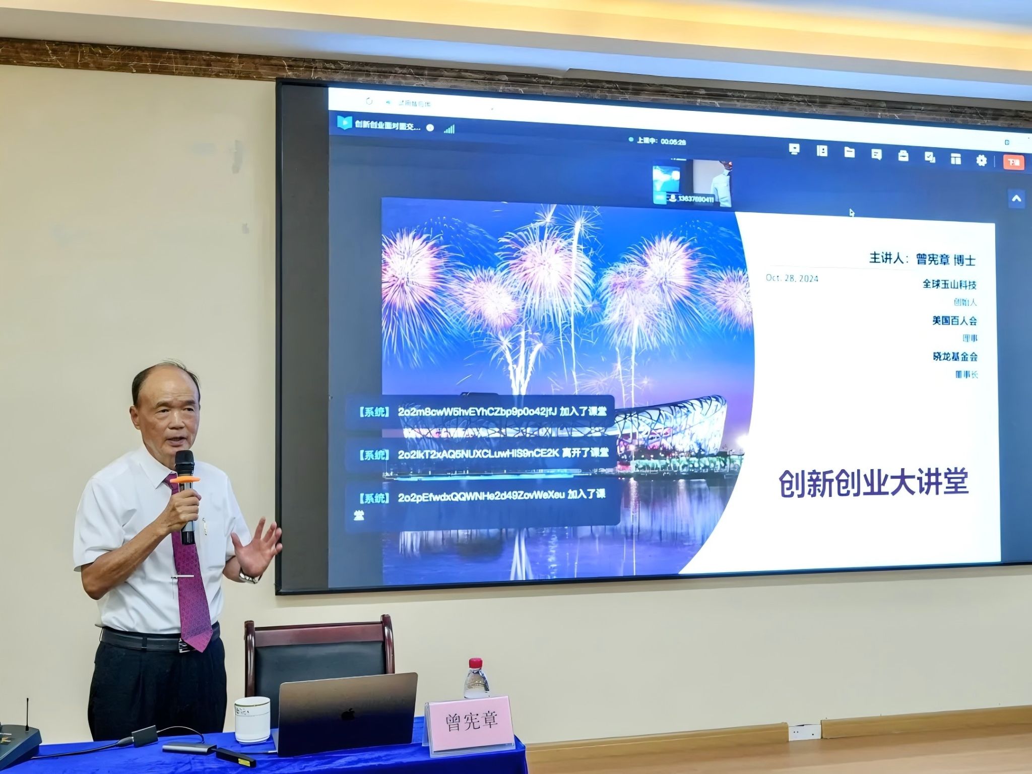 活动伊始,曾宪章博士以其丰富的创业经历和深厚的行业洞察力,为在场师生带来了一场精彩绝伦的演讲。他不仅讲述了自己的创业历程和投身公益的感人故事,还深入剖析了企业家在创业道路上可能遇到的困境,并分享了优秀企业如何在新时代背景下制定创新战略以应对挑战。曾博士强调,创业成功的关键在于持续的创新、坚韧不拔的精神以及对市场趋势的敏锐洞察。通过一系列生动的创业及创新典范案例,他为在场的未来创业者们提供了宝贵的启示和实用的建议。