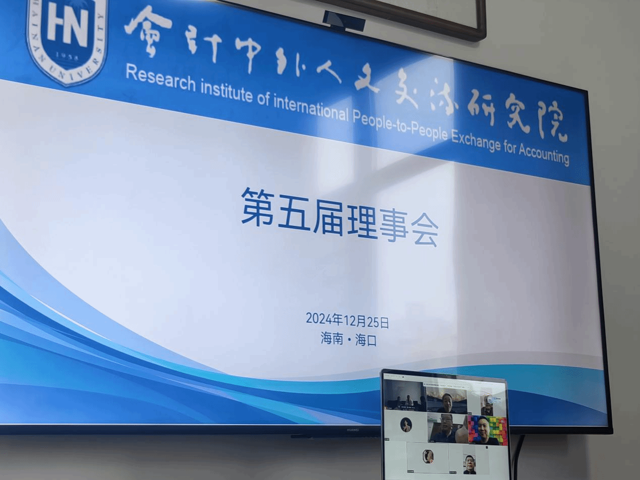 2024年12月25日,海南大学会计中外人文交流研究院第五届理事会在海南大学“东坡西岸”工作室顺利召开。理事长伍中信教授,副理事长肖泽忠教授、蔡春教授、张长海教授,院长许能锐教授,副院长吴锡浩教授、胡珺教授、郭慧芳副教授,理事刘岳(加拿大)、高嘉鸿(美国)、张伟华、窦欢,研究院办公室主任徐雅君,特邀嘉宾加加拿大TPEI的董苏女士等人参加会议。会议由伍中信主持,采用线下+线上的方式进行。
